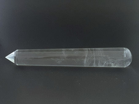 As per GMCKS the range of facets in a laser crystal should be 16-36, higher the number of facets the projected energy is more denser so making it a very powerful crystal. This Laser Crystal is manufactured in our facility following the guidelines as laid by Grand Master Choa Kok Sui. The crystal rock is handpicked by us, and all the processes right from cutting to polishing is done by our experienced craftsmen. Each Laser Crystal is unique by itself. To make your selection, go through our range of crystals as per the specificatons of your choice. We are sure that the crystal will choose you, rather than you choosing the crystal. This is an exclusive Laser Crystal having facets weighing 424 g and is 23 cm in length.